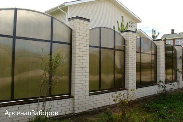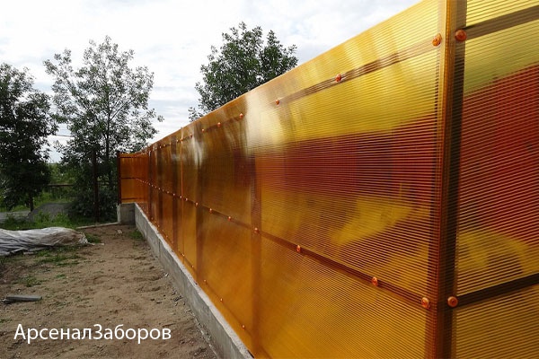 Компания «АрсеналЗаборов» предлагает надежные и долговечные ограждения из поликарбоната для загородного дома и дачного участка. Данный забор не боится осадков, не затеняет участок, имеет эффектный внешний вид. Листы из синтетического полимера прекрасно сочетаются с традиционными строительными материалами, что позволяет воплотить любой дизайнерский замысел. Узнать стоимость забора или оформить заказ Вы можете в режиме онлайн.